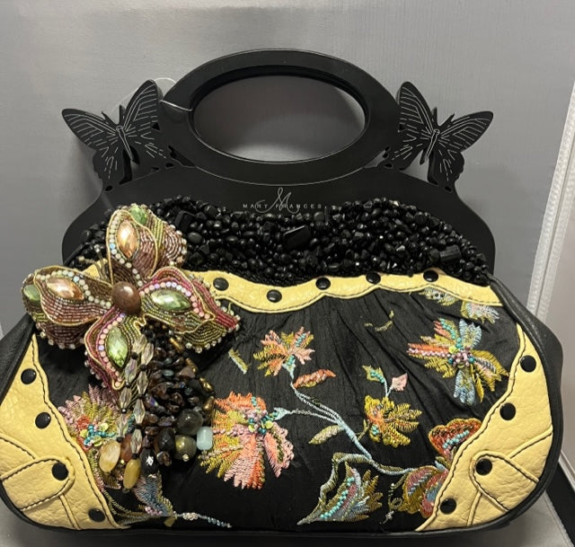 MARY FRANCES HANDBAG SOCIAL BUTTERFLY 12" WIDE 11" TALL HAND BEADED AND EMBROIDERIED BAG