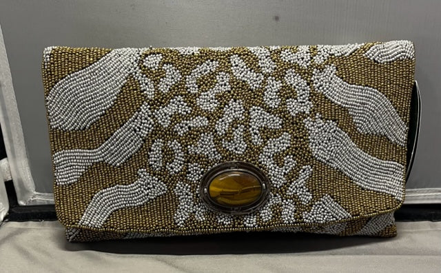 MARY FRANCES CLUTCH "SAVAGE" 11" WIDE 7" TALL WITH CROSS BODY CHAIN HANDLE